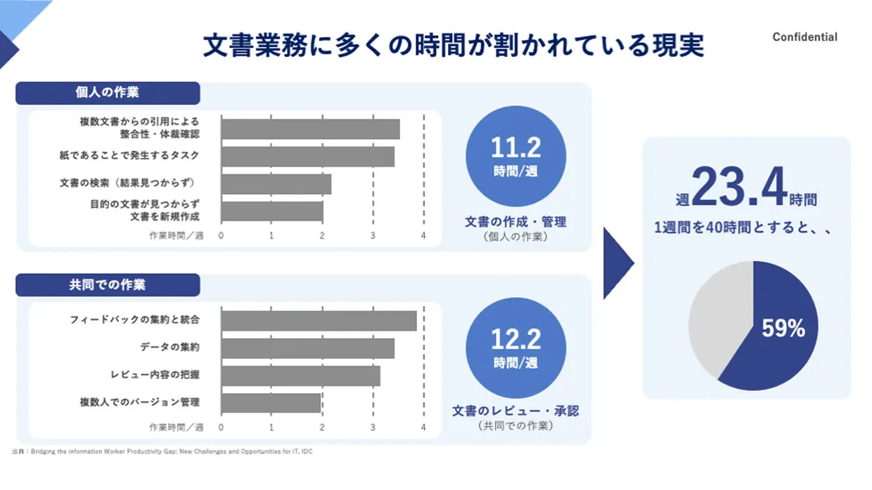 世の中全体でDX化が叫ばれ、様々な領域でデジタライゼーションやその先にある業務変革が進んでいます。しかしながら、多くのビジネスパーソンが日常的にかなりの時間を割いている文書業務においては、テクノロジーによって生産性を高められる要素が多くあるにもかかわらず、あまりDX化などが進んでいないのが実情です。