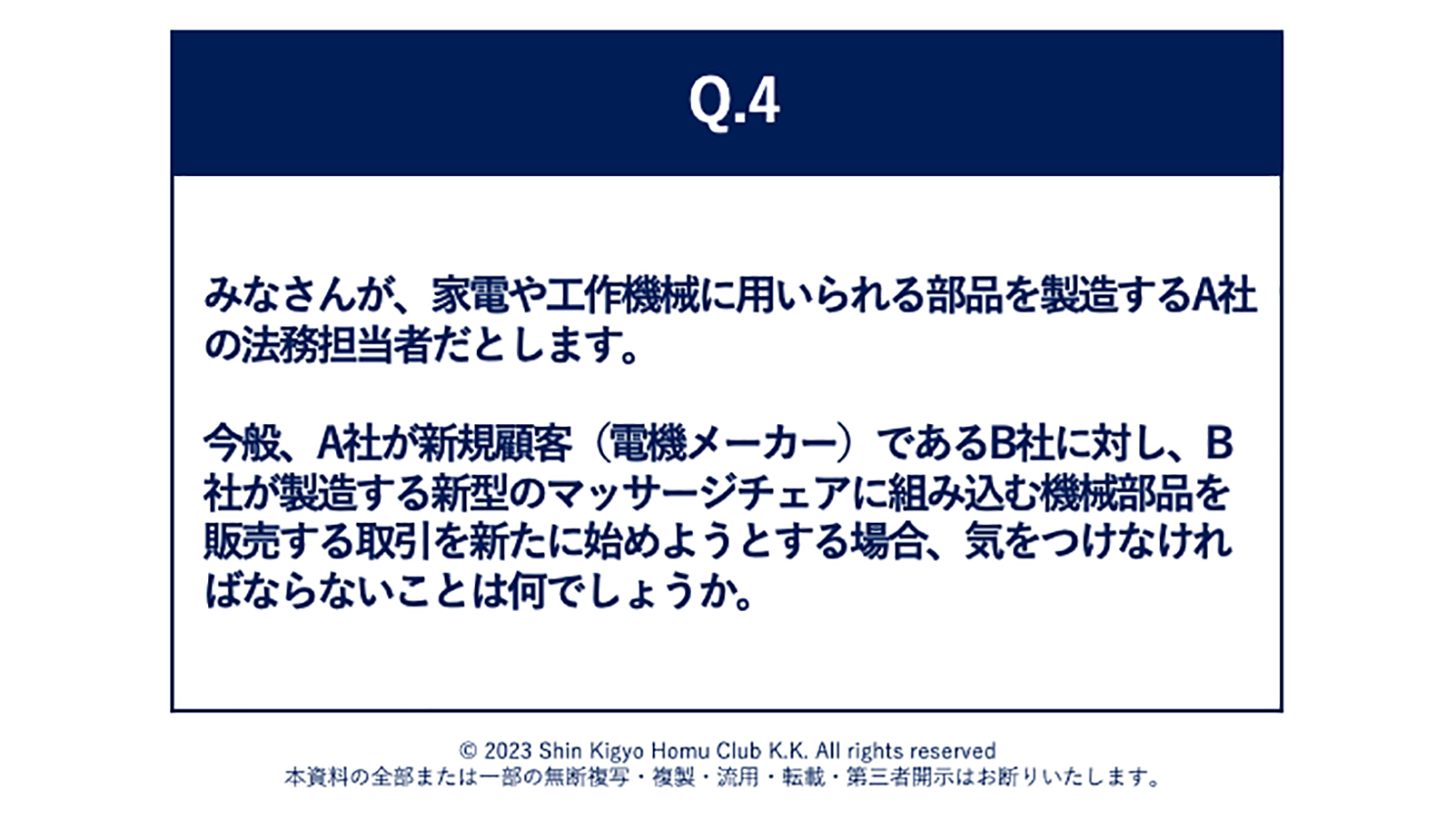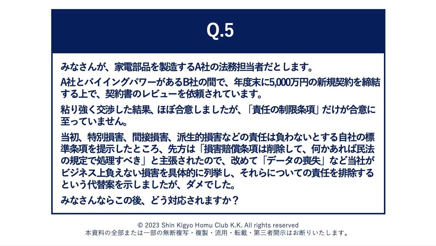 登島:法務機能を果たしている全ての人が、この一連の思考手順をしっかり回し、行動に移すことを期待されていて、今まさにこのセミナーに参加してらっしゃると思います。
