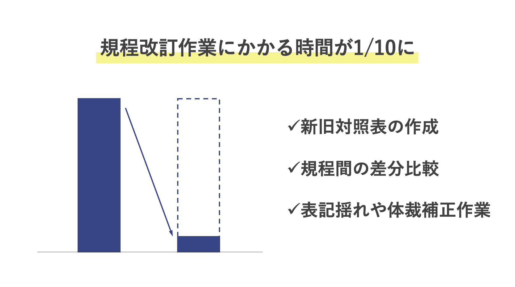 - 規程改訂の一部の作業時間を1/10程度に削減