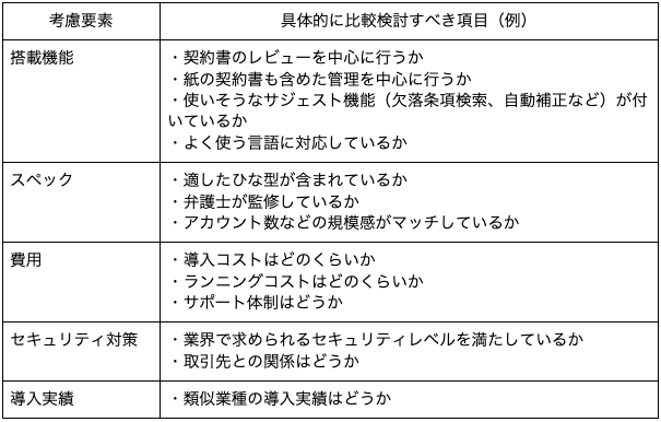 ツール選定に当たっての考慮要素を、以下にまとめておきます。