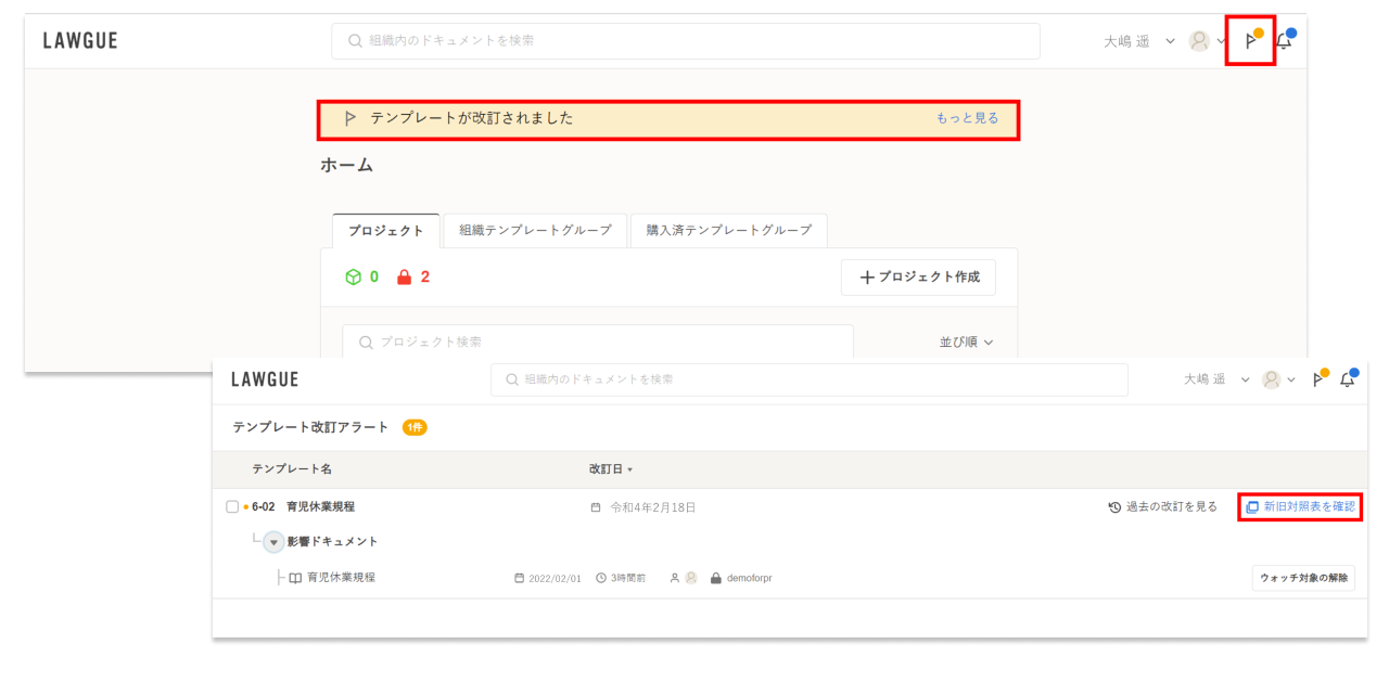 本機能により、テンプレートや各社が提供する書式集の改訂を検知し、自社のドキュメントへの影響をアラートの形で確認できるようになります。