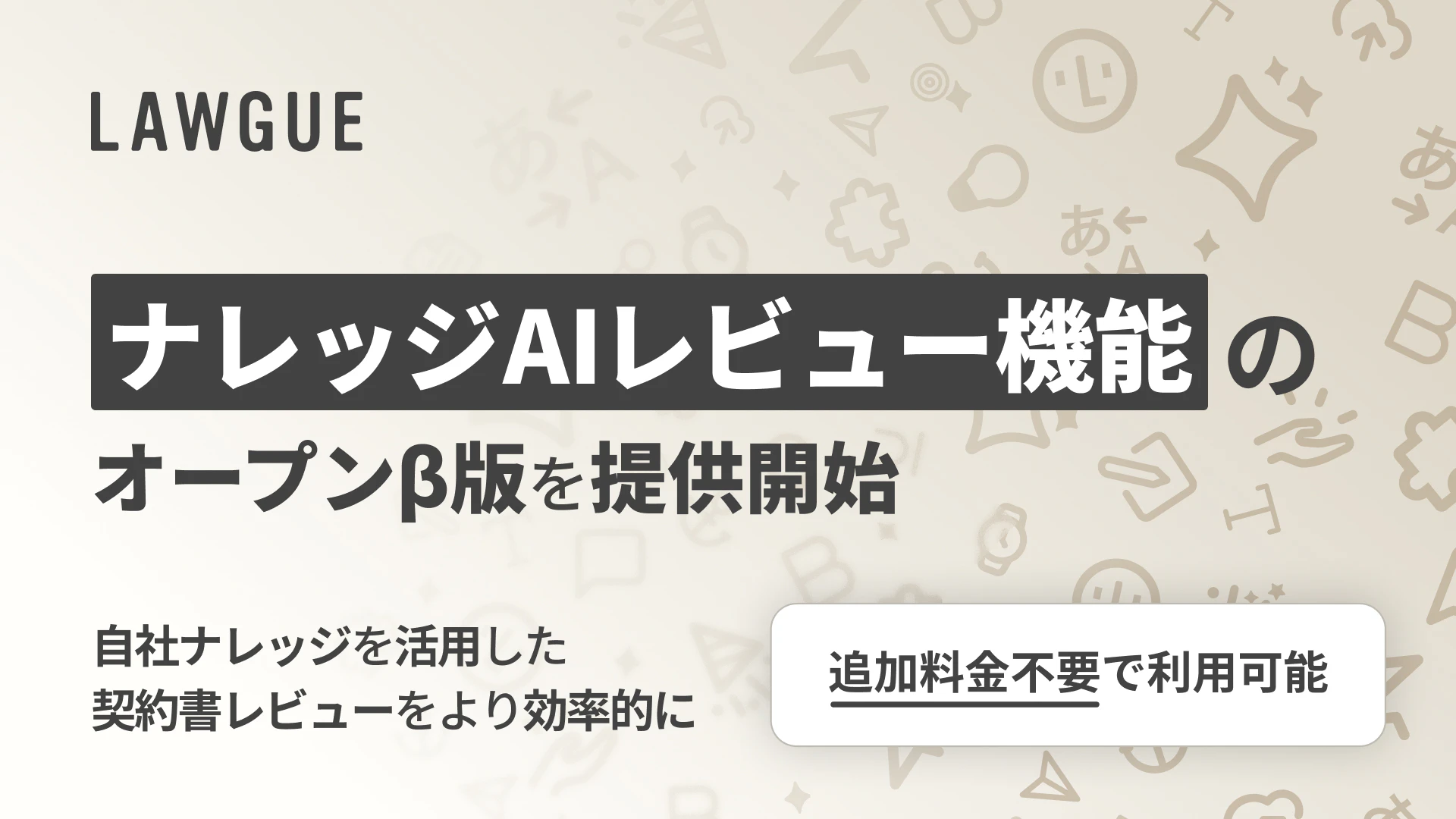 同機能においては、昨年からユーザーテストを⾏い、検証・製品へのフィードバックを踏まえ、この度広くLAWGUEユーザーが利⽤可能なオープンβ版の提供開始となりました。