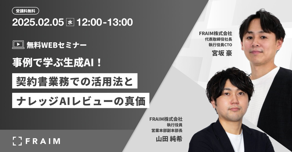 AIを搭載したクラウド ドキュメント ワークスペース「LAWGUE」を提供するFRAIM株式会社(本社:東京都渋⾕区、代表取締役社⻑:宮坂豪、以下「FRAIM」)は、特許出願中の独⾃技術を活⽤して⾃社の特殊性を反映できる「ナレッジAIレビュー機能」のオープンβ版の提供を開始いたします。尚、本機能に関しては、LAWGUEユーザーの追加料⾦は必要なく(※1)利⽤することが可能です。