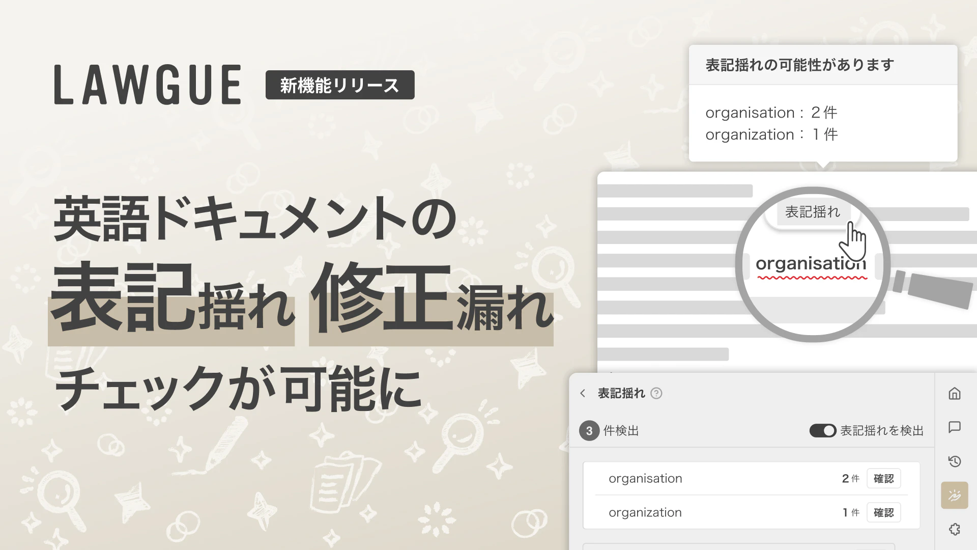 次世代AIクラウドエディタ「LAWGUE」、英文ドキュメントの「表記揺れ」「修正漏れ」チェックが可能に 〜目視による見落としリスクを低減〜