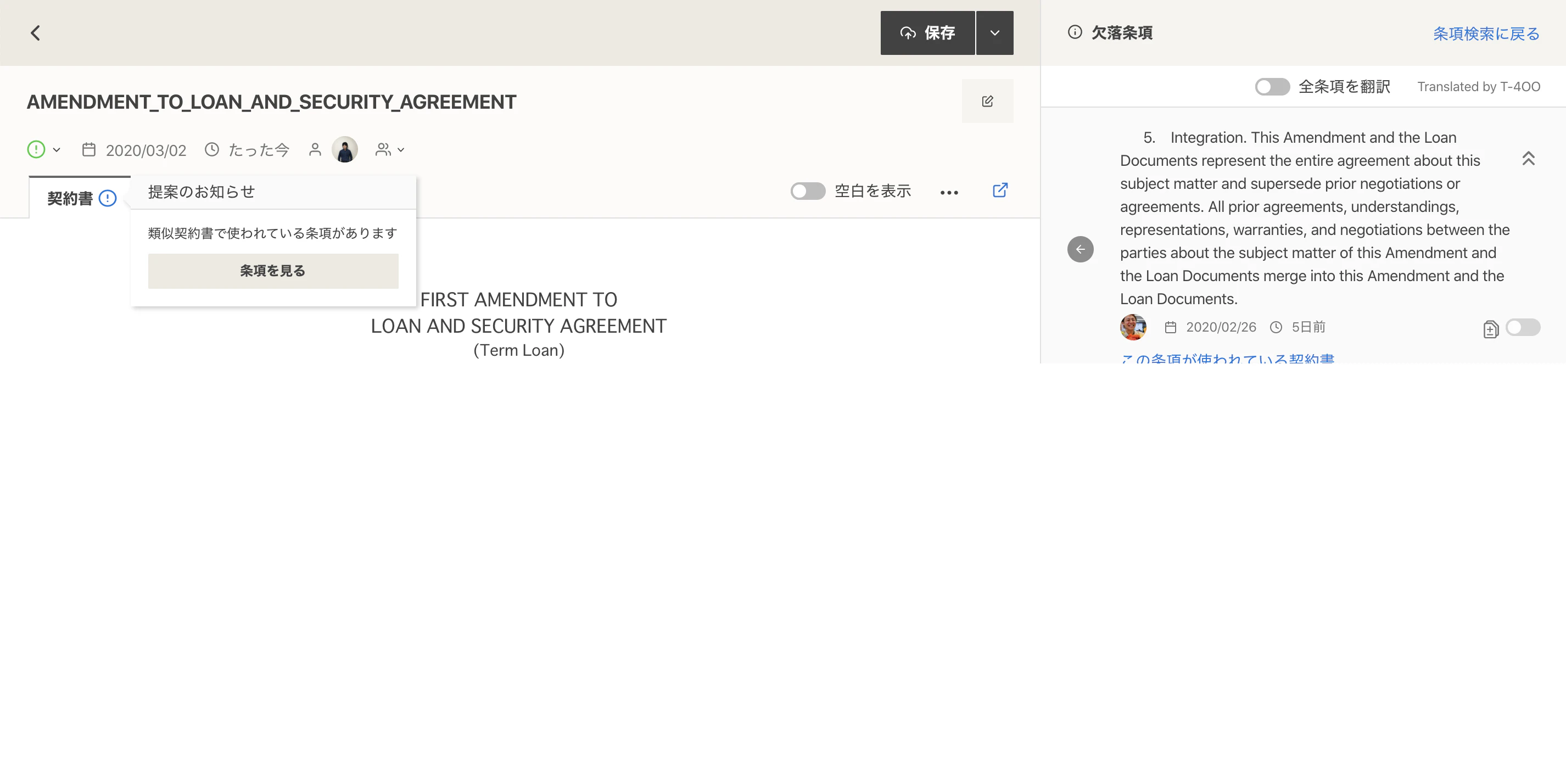 欠落条項サジェスト機能をリリース(自社特許技術)