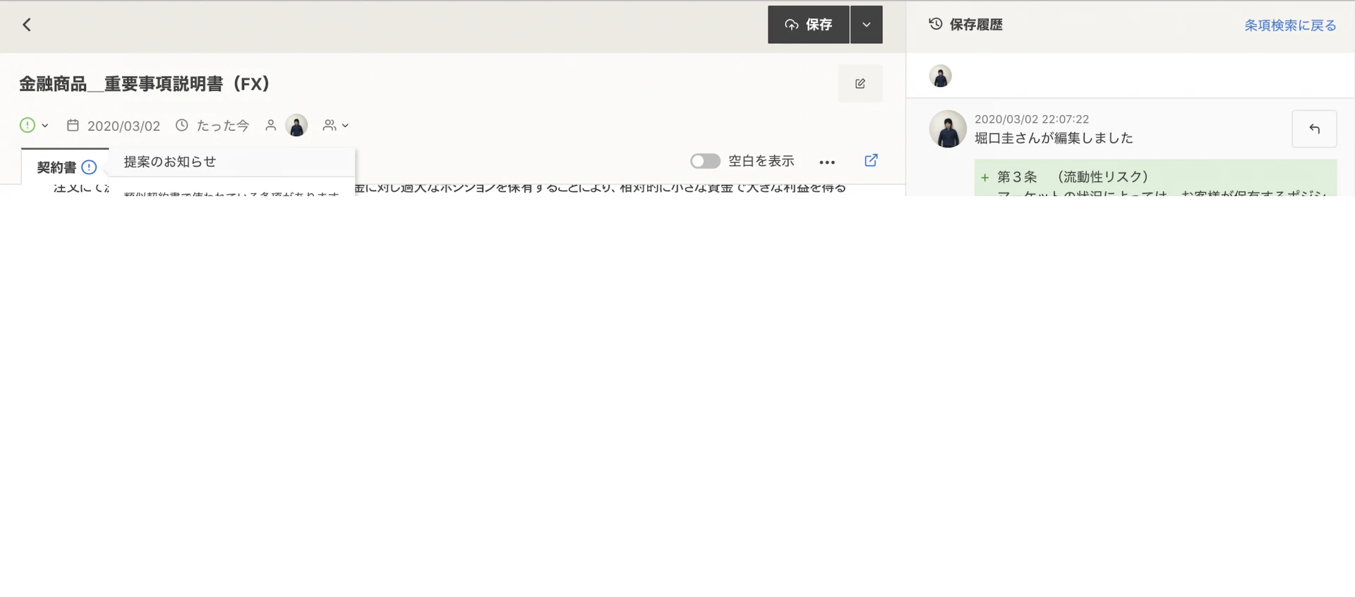 - 条項単位でのきめ細かいバージョン管理(差し戻しを含む)が可能