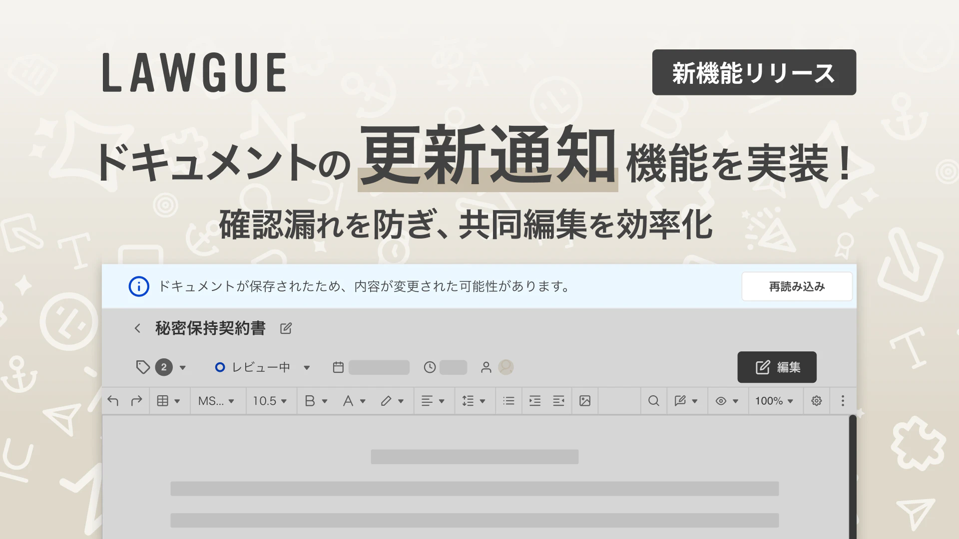 次世代AIクラウドエディタ「LAWGUE」、ドキュメントの更新通知機能を実装 〜複数人での同時編集中に最新バージョンへの更新をバナーで表示。確認漏れを防ぎ共同編集を効率化〜