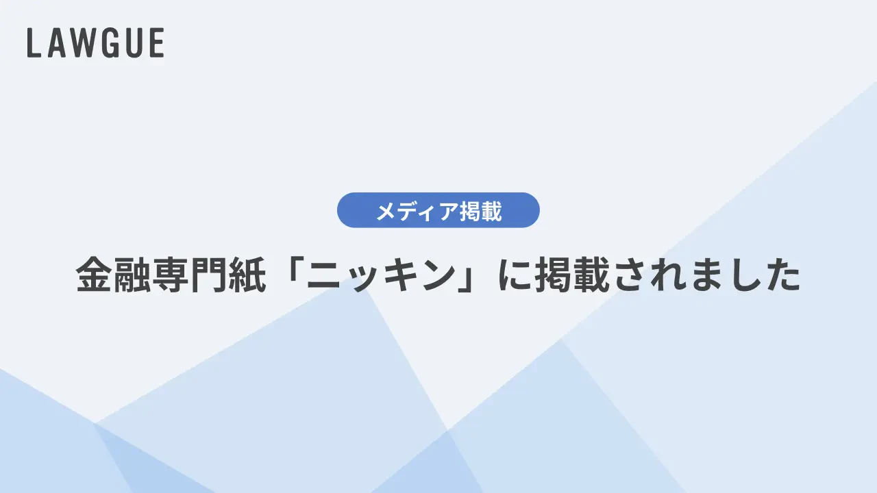 LAWGUEが金融総合専門紙「ニッキン」に掲載されました