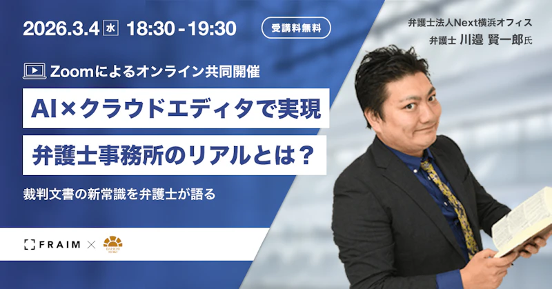 【登壇】今村俊介氏(FRAIM株式会社) - 裁判文書の新常識!AI×クラウドエディタで実現する『LAWGUE』導入事務所のリアルとは