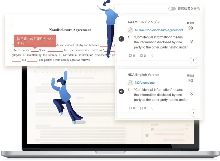 契約書に特化した翻訳エンジンとの連携で高い翻訳精度を誇ります